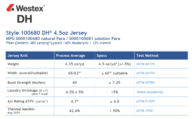 O tecido Westex®DH Knit conta com as mais recentes tecnologias de segunda pele com características AR / FR que ajudam a moderar a temperatura corporal, incorporando a capacidade de respirar e absorver a umidade, reduzindo o desconforto do suor, aumentando a permeabilidade ao ar e diminuindo o calor retido, que pode afetar a capacidade do corpo de regular a temperatura.