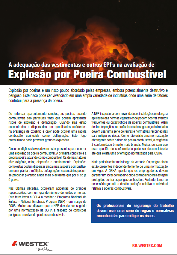 Explosão por poeiras é um risco pouco abordado pelas empresas, embora potencialmente destrutivo e perigoso. Este risco pode ser vivenciado em uma ampla variedade de indústrias onde uma série de fatores contribui para a presença da poeira.