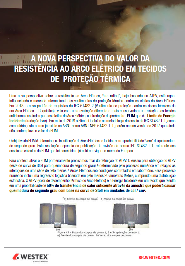 Uma nova perspectiva sobre a resistência ao Arco Elétrico, “arc rating”, hoje baseada no ATPV, está agora influenciando o mercado internacional das vestimentas de proteção térmica contra os efeitos do Arco Elétrico.